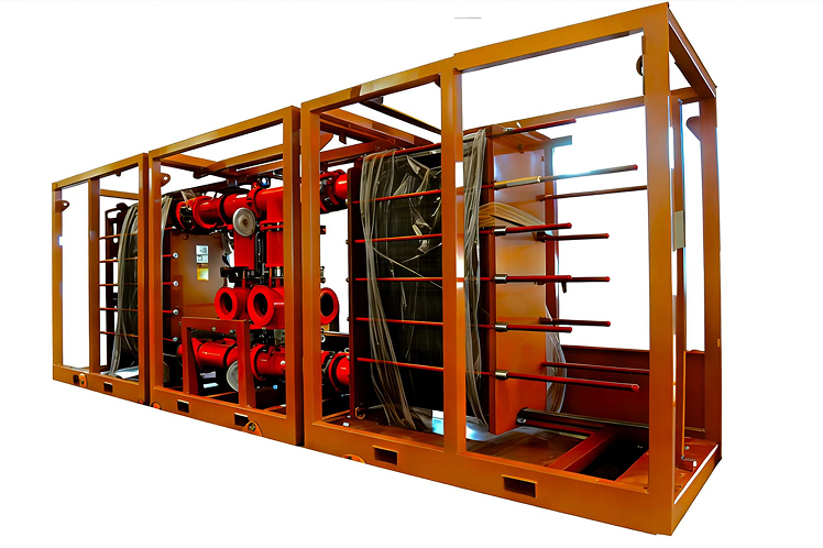 При бурении глубоких, высокотемпературных и наклонно-направленных скважин необходимо за счёт циркуляции бурового раствора охлаждать забой, отводя тепло на поверхность. По мере циркуляции температура бурового раствора повышается, что может нарушать передачу данных с забоя и ухудшать механические характеристики бурового инструмента. Пластинчатый охладитель бурового раствора модели CTSC240 предназначен для охлаждения высокотемпературного бурового раствора на морских буровых установках и установках с большим расходом, и может изготавливаться с учётом требований заказчика.